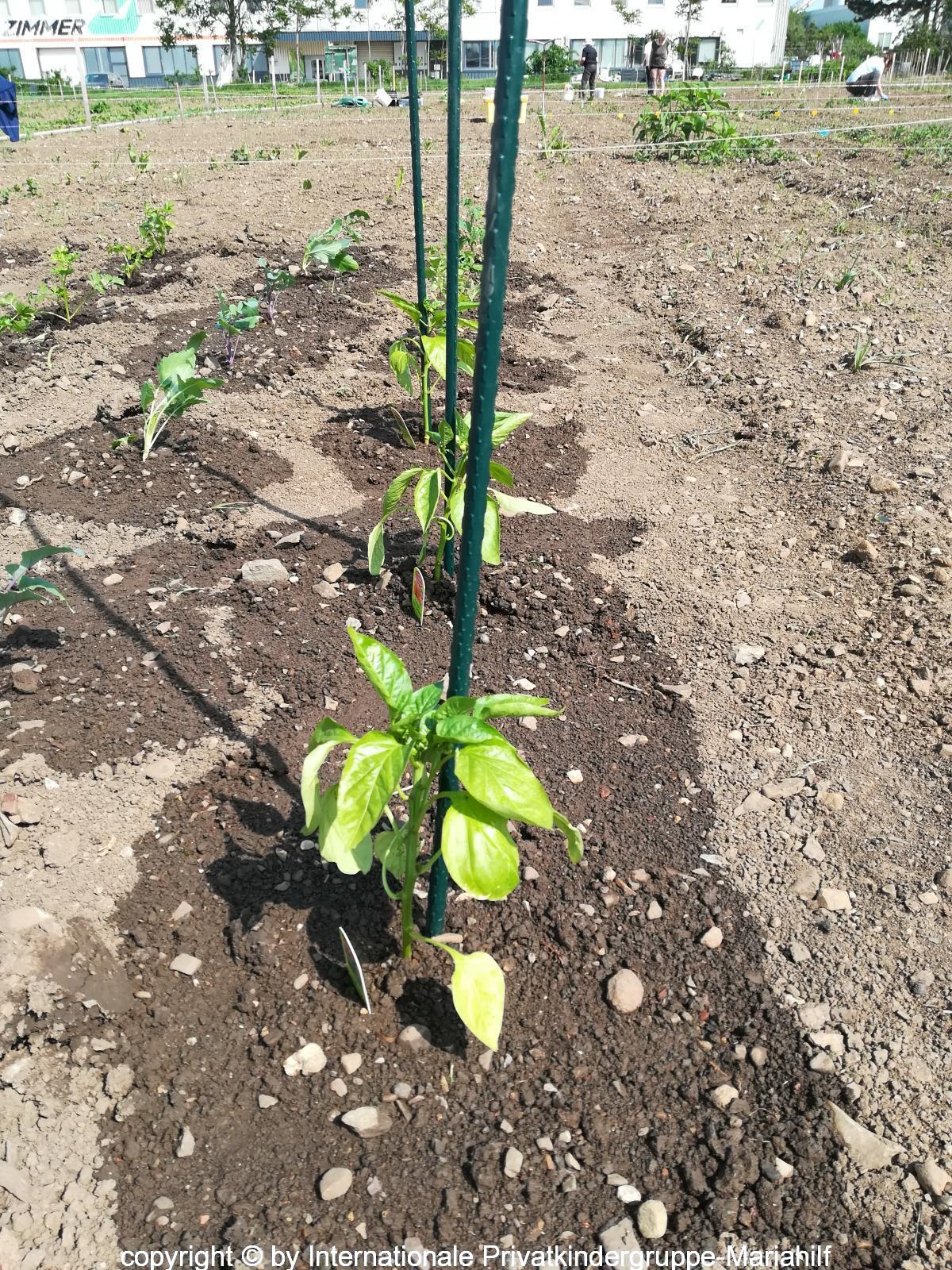 Am 5. Mai war es soweit: Gemüse und Obst wurden gesetzt. Hier eine kurze Aufstellung der eingesetzten Nützlinge: Erdbeeren, dreierlei von Salaten, Weißkraut, Sellerie, Kohlrabi, Paprika, Paradeiser, Gurken und Zucchini.